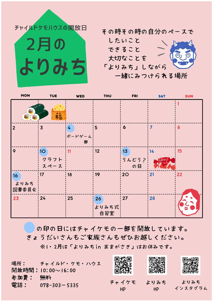 ★みなさんに「よりみち」を安心して利用いただけるよう、参加される予定の方やご家族に発熱・咳などの感染症状がある場合のご利用はお控えください。また、来所時の体調チェックにご協力をお願いします。