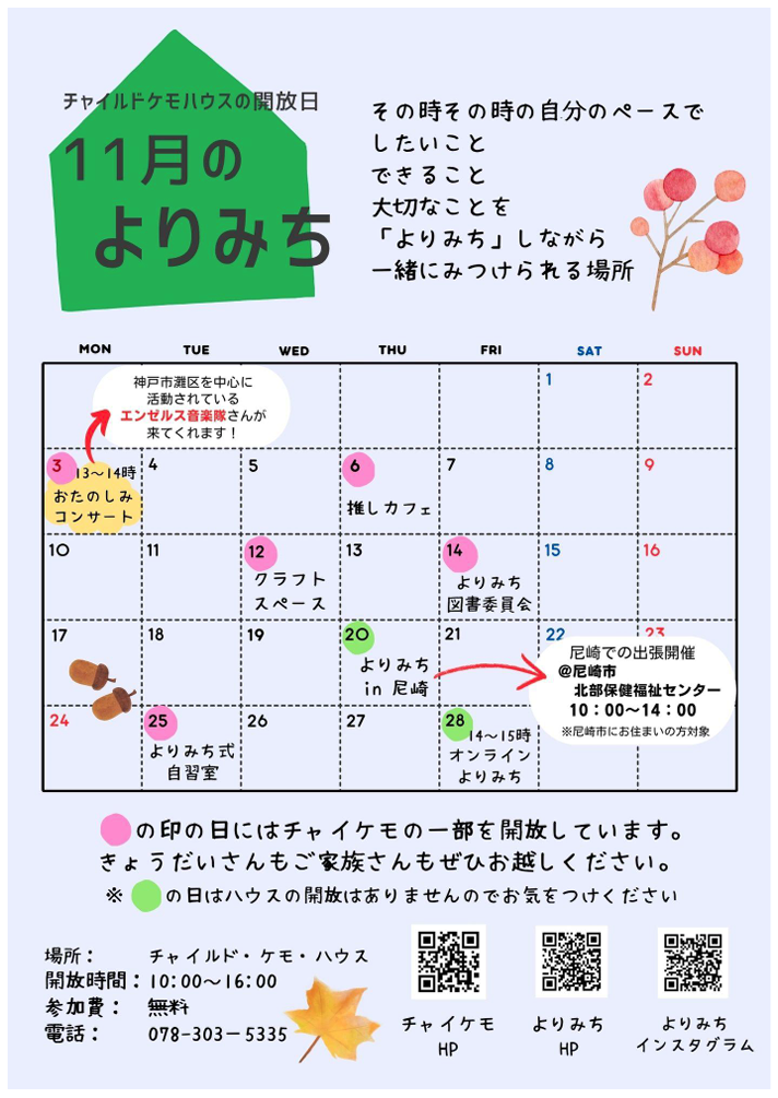は、チャイケモが新しくはじめた、病気のあるお子さんやそのごきょうだい、ご家族のみなさんのための場所です。